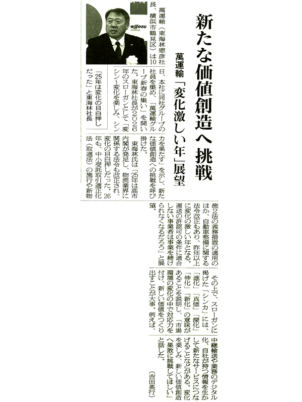 2025年01月23日 物流weekly「後継者の育成を 萬運輸『新春の集い』開く」