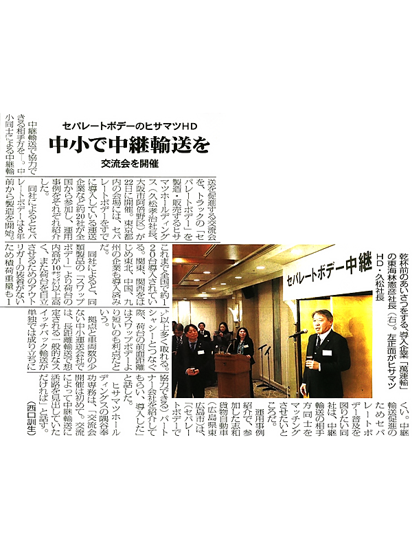 2021年02月16日 物流ニッポン「協同中継輸送を開始 交代方式で負担減」